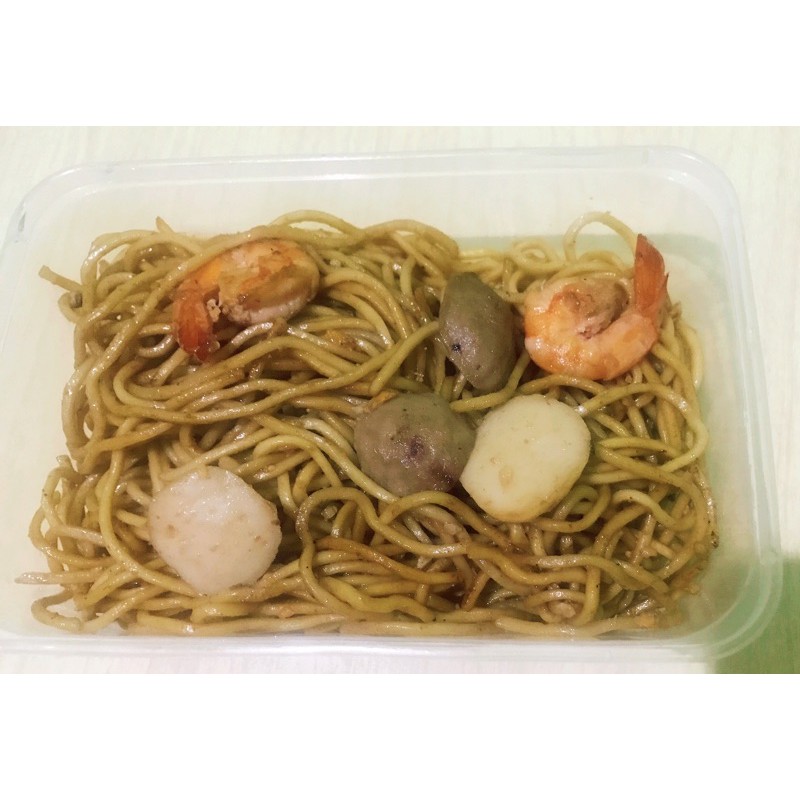 Bakmi Goreng Seafood - Traditionally tinorangsak is cooked in a bamboo.